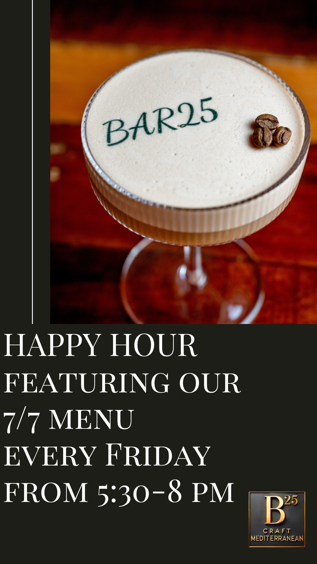 From intimate dinners to milestone moments, Bar25 offers a setting designed to impress and inspire. Our private dining experience combines exceptional service, Mediterranean-inspired menus, and custom-crafted cocktails to create an atmosphere that's both elegant and effortless. Whether you're celebrating with close friends or hosting a corporate event, our team ensures every detail is handled with care and taste.